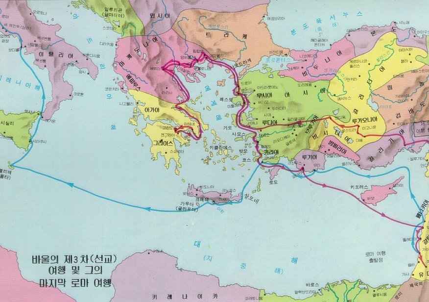 ④제3차 전도여행(18:23~21:16): 갈라디아와 브로기아, 에베소, 마게도냐, 드로아, 밀레도, 두로, 가이사랴 등