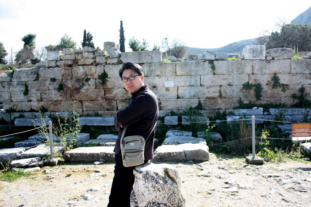 김신곤 목사도 고대 고린도교회 기단에 기대어 서서 인증샷!^^