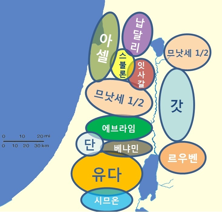 ⑩스불론: 북부 내륙지방의 땅을 받는다.