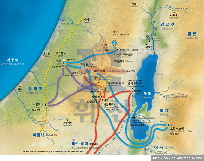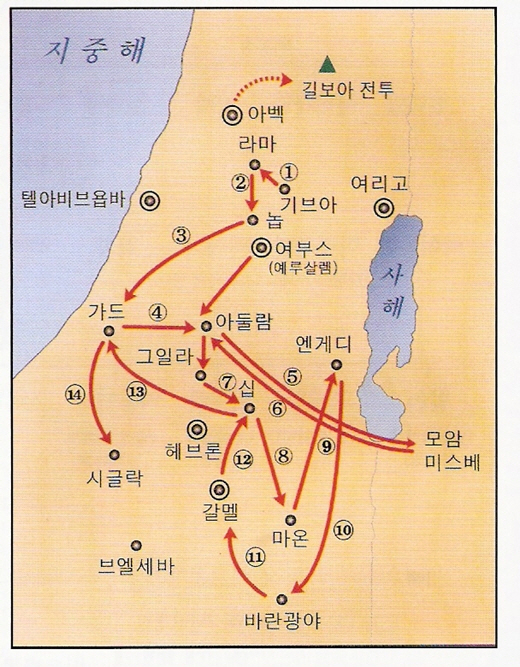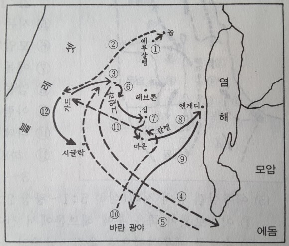 다윗의 도피 생활을 위한 이동 경로